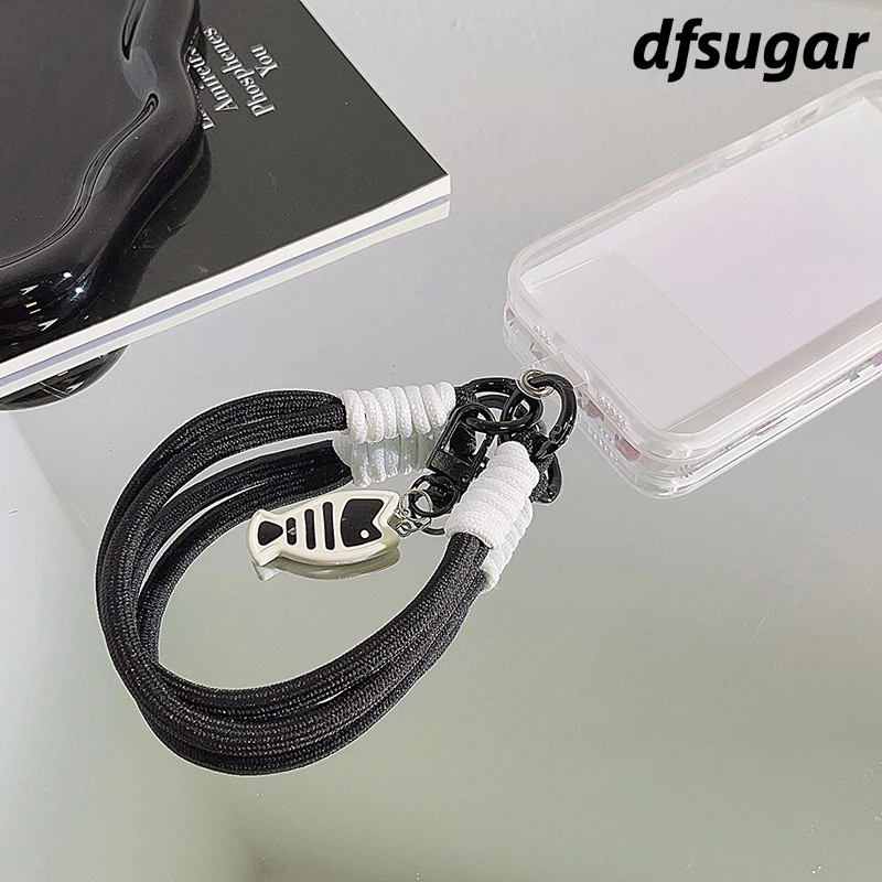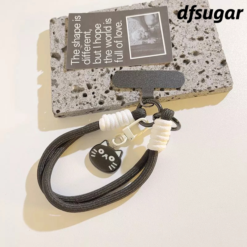 Tali hp Lucu Anak Kucing Hitam Gantungan Hp Small Fish Cat Phone Strap Case Woven Pendant Short Camera Strap Phone Lanyard Hp -DF