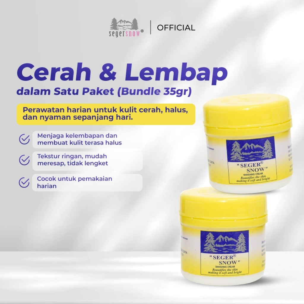 BUY 1 GET 1 Seger Snow Vanishing Cream Botol Besar 35gr| Mengandung Gliserin Melembabkan Kulit Meratakan Warna Kulit & Menyamarkan Noda Hitam Halal BPOM