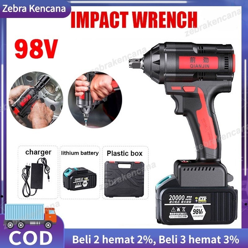 98VCordless Impact Wrench 98V /Mesin Impact Wrench Baterai Charger Pembuka Baut Buka Baut/Brushless Drill Air Impact Wrench Kit Drill Machine Battery Wood Concrete Wall Impact Wrench