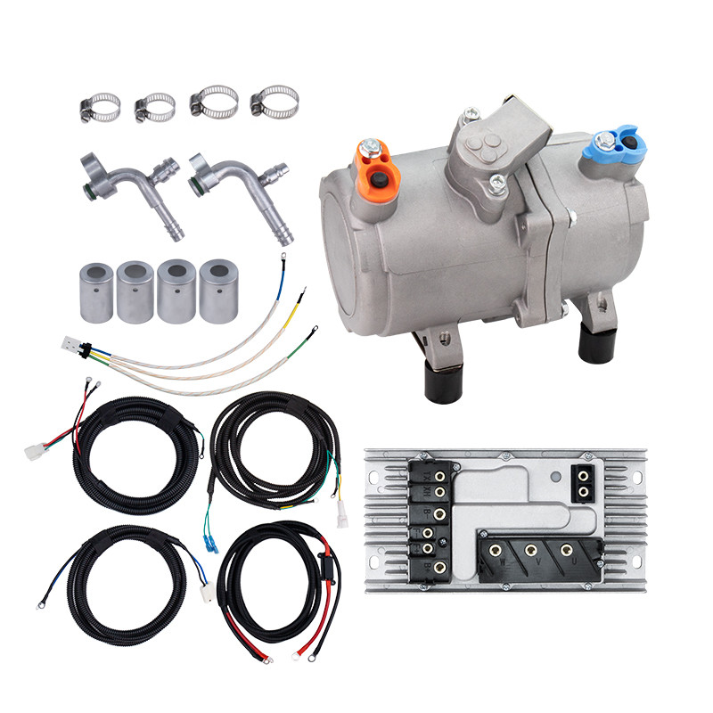 A/C 12V 24V 48V Electric Compressor Set for Auto AC Air Conditioning Car Truck Bus Boat Tractor Shop Automobile Aircon