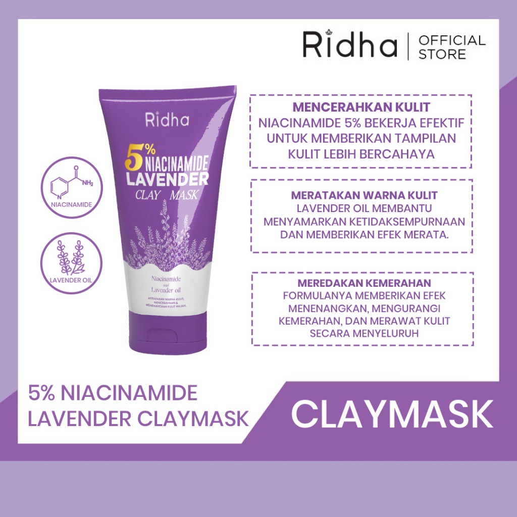 A NEW PRODUCT - RIDHA 5% Niacinamide Lavender Clay Mask - 50gr
