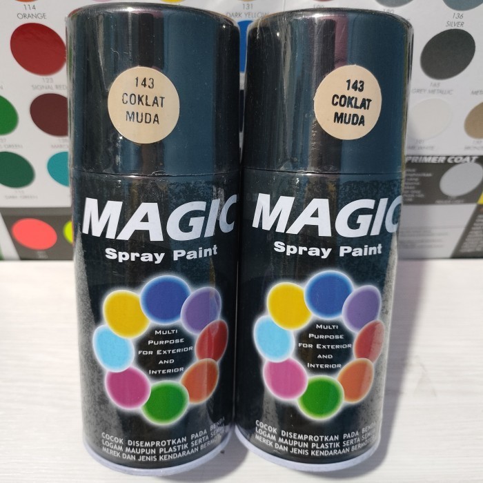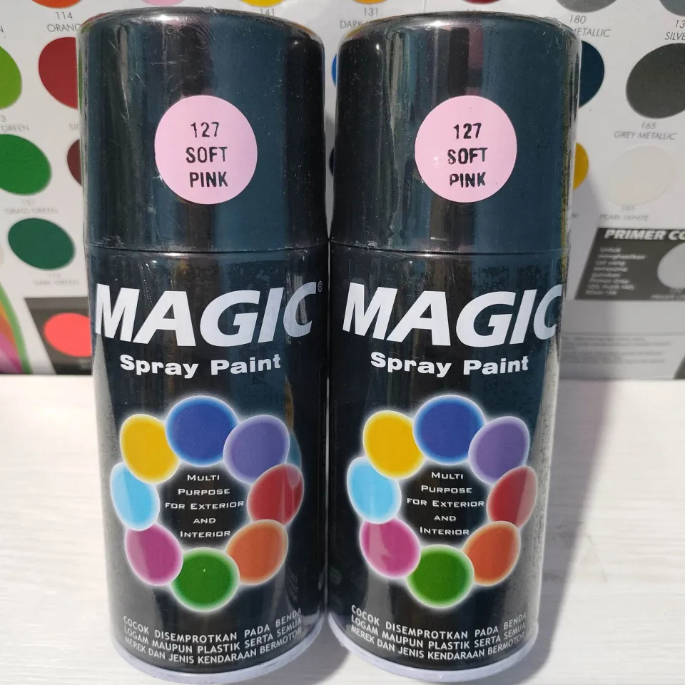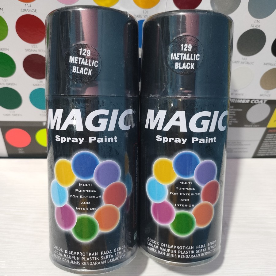A. magic spray paint 300cc pilok pilox cat semprot magic 300cc black 139 hitam glossy hitam metallic hitam doff 184 clear pernish 101 clear doff 110 white putih metallic mearh biru hijau biru hijau semua warna komplit 300cc