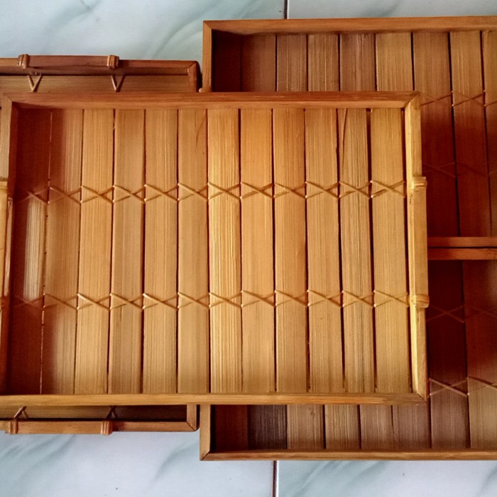A1 BAKI ANYAMAN BAMBU / BAKI BAMBU UNIK - 1 Set Isi 4