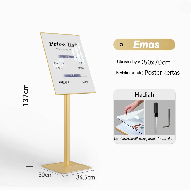 Standing Sign Display A2/A3/A4 - Papan TandaBingkai Tipis Transparan Tinggi, Desain Eksklusif untuk Menu & Promosi Nama