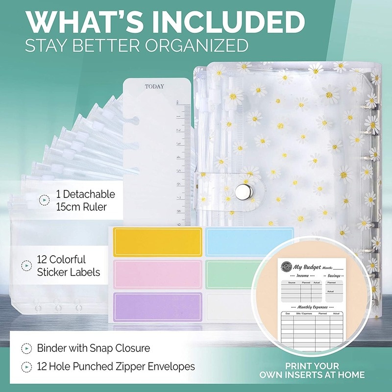 A6 Binder Cover Budget Planner Binder Pockets Organizer Cover Binder Uang Kertas Ukuran A6 Dengan