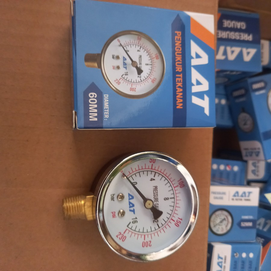 AAT Pressure Air Gauge Alat Ukur Tekenen Angin Kompresor 16Bar d 1/4"
