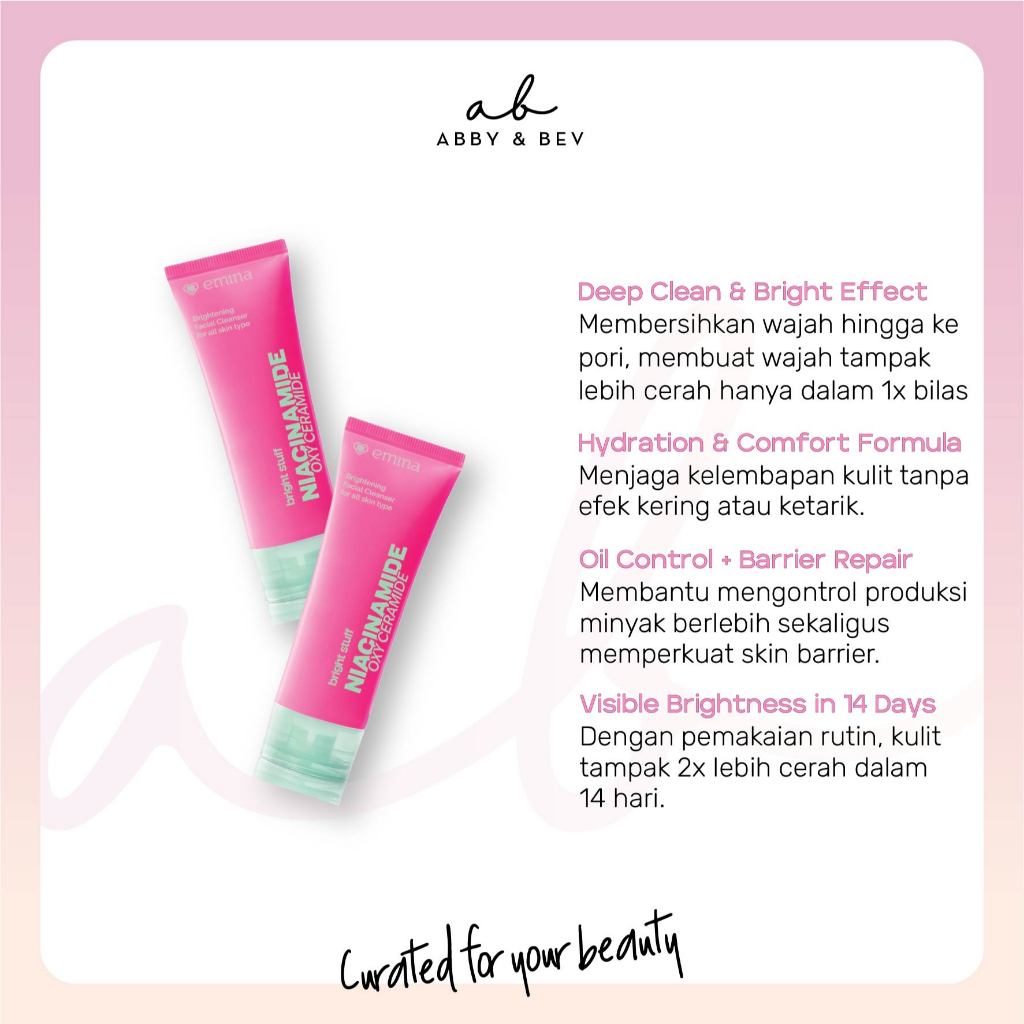AB - Emina Niacinamide Oxy Ceramide Brightening Face Wash [100ml]/ Sabun Muka Cerah Glowing Perbaiki Skin Barrier Mengontrol Minyak Sebum Lembab Tanpa Ketarik Anti Kusam Cocok untuk semua jenis kulit