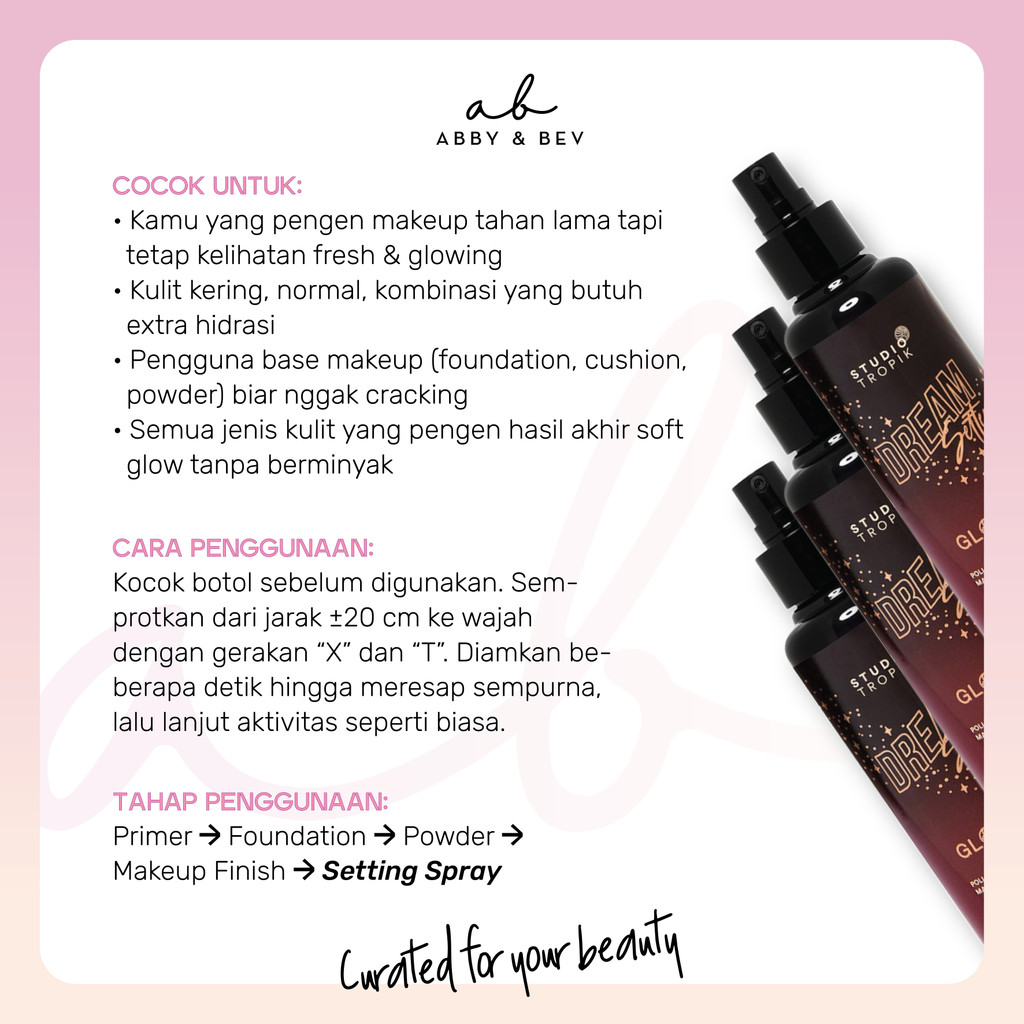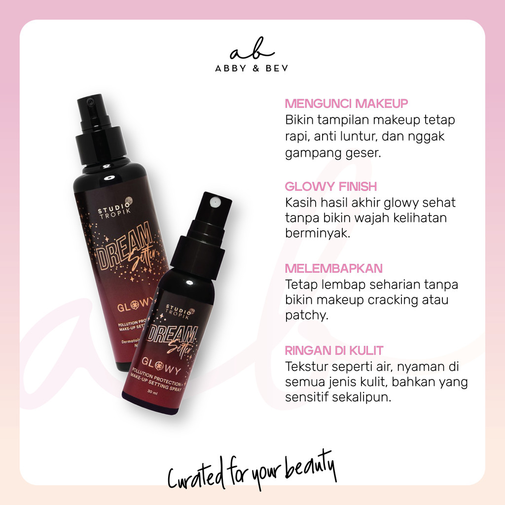 AB - Studio Tropik Dreamsetter Glowy [30ml&130ml]/ Setting Spray Hasil Akhir Soft Glowy Membantu Makeup Tahan Lama Setting Spray Base Makeup Spray Face Mist