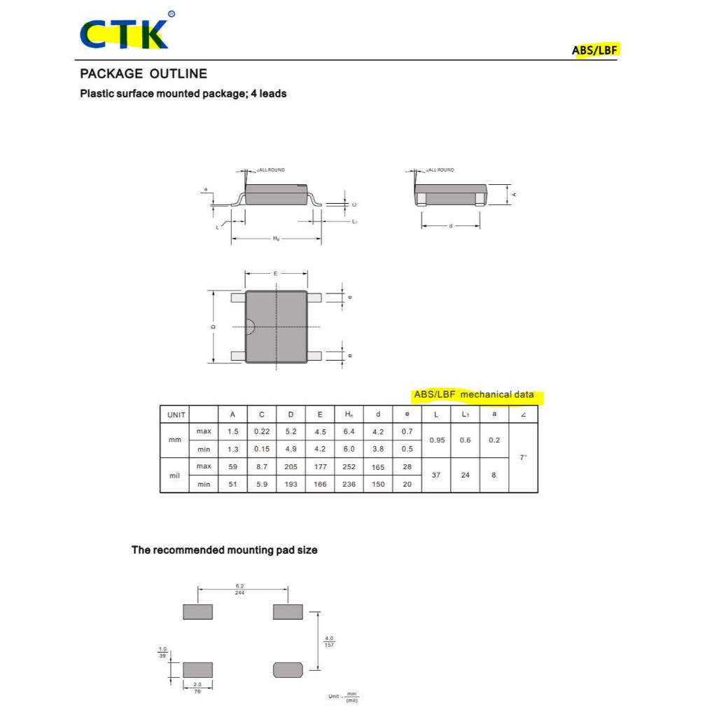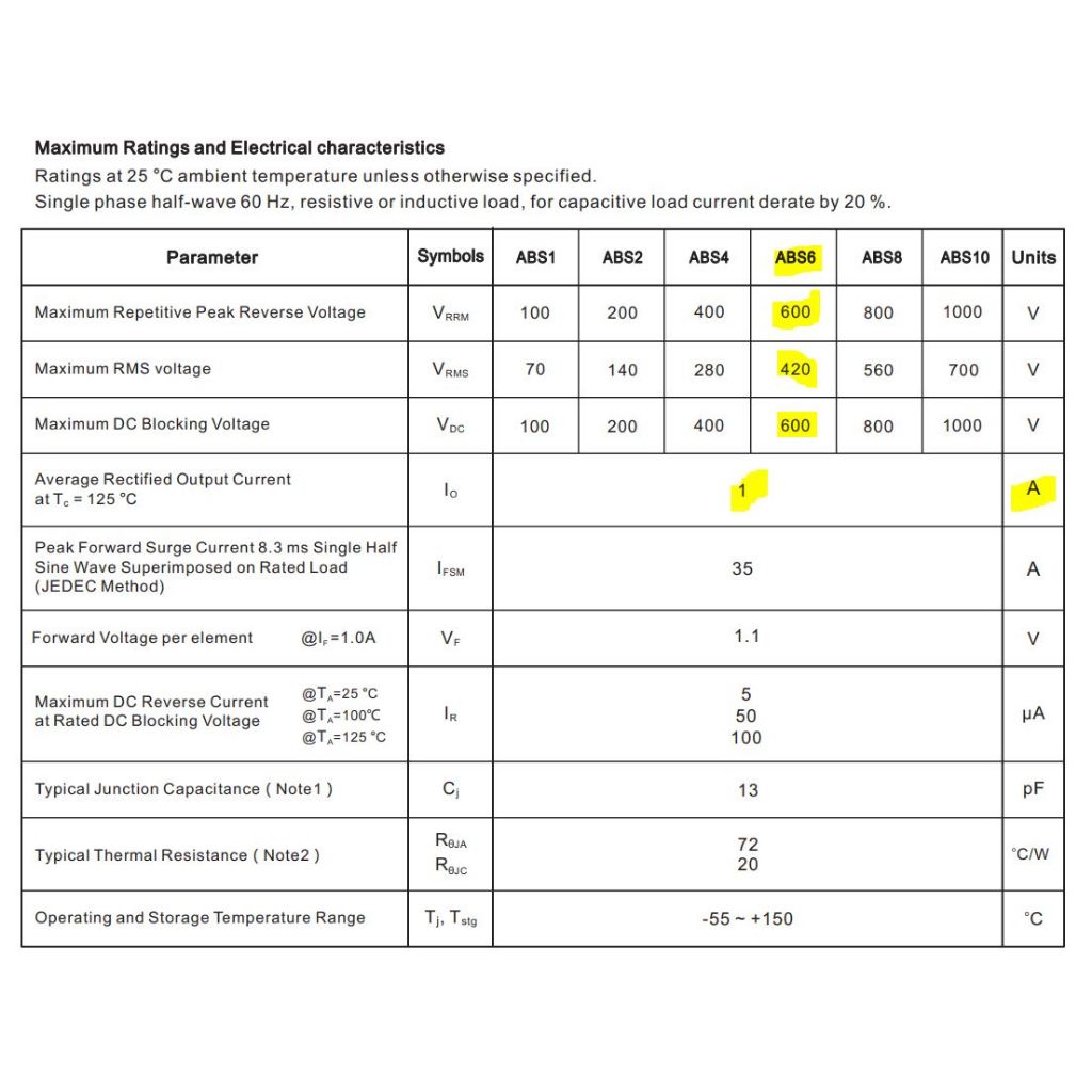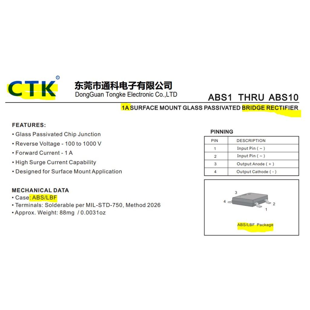 ABS6 1A 600V BRIDGE RECTIFIER ABS6 MBF CTK Electronics