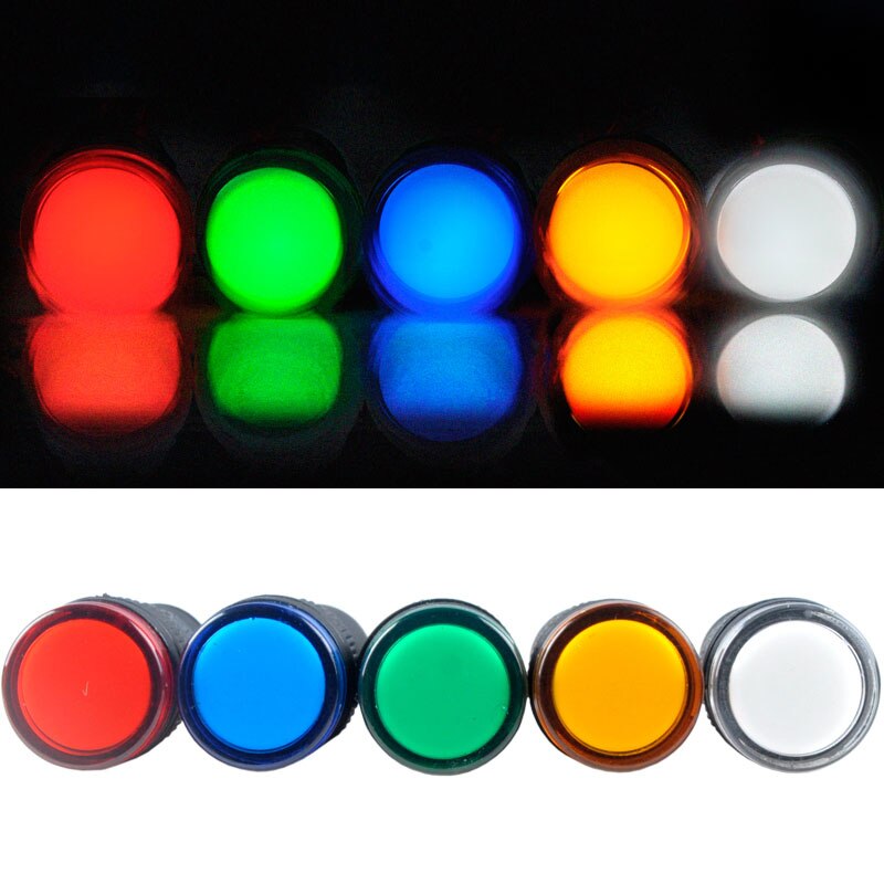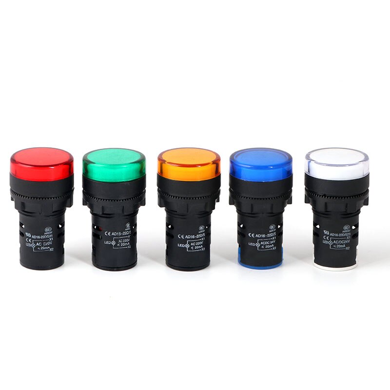 AC / DC 220V 22mm LED untuk Indikator Sinyal Lampu Elektronik Lima warna opsional AD16-22