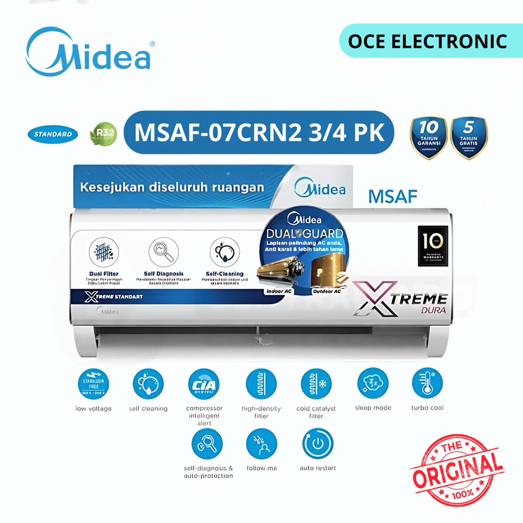 AC MIDEA MSAF-07CRN2 3/4PK FREON R-32 INDOOR AC + OUTDOOR AC ( UNIT ONLY )