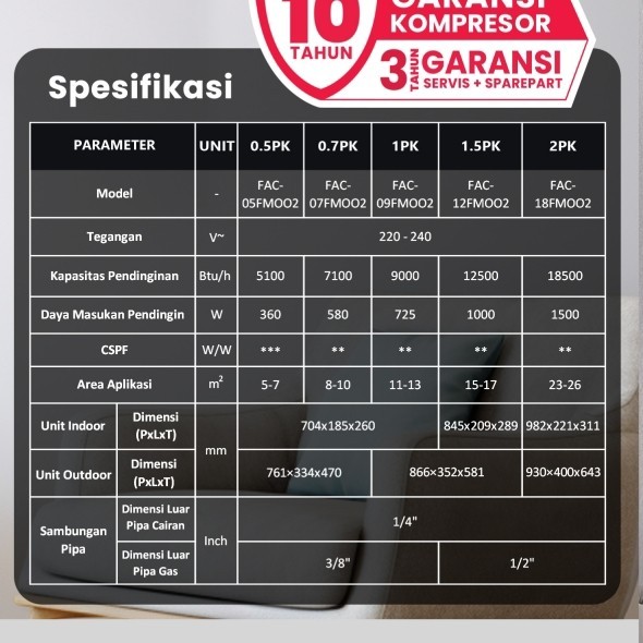 FLIFE AC Low Watt 1 PK - FAC-09FCOO - Putih (Unit Indoor & Outdoor) 1PK SPLIT
