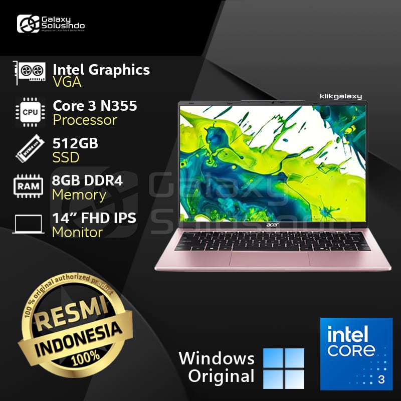 ACER ASPIRE LITE 14 AL14-37P-36AW - Intel Core 3 N355 512GB SSD 8GB RAM - Rose Sakura Notebook Laptop - HG