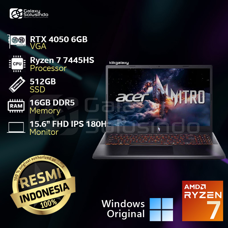 ACER NITRO V15 ANV15-42-R60U - GeForce RTX 4050 AMD Ryzen 7 7445HS 512GB SSD 16GB RAM Notebook Laptop Gaming - HG