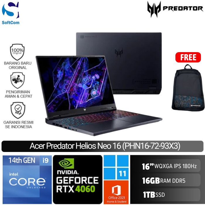 ACER Predator Helios Neo PHN16 72 93X3 i9 14900HX/16GB/1TB SSD/GeForce RTX 4060 8GB/16 WQXGA 180Hz/W11