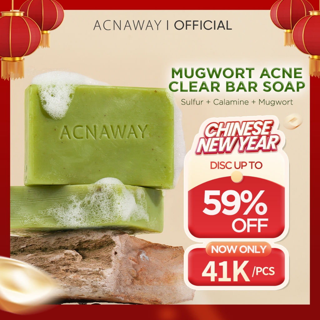 ACNAWAY Mugwort Acne Clear Bar Soap - Sabun Organik Natural Acne Soap untuk Jerawat Badan Tanpa Paraben & Alkohol with Sulfur Calamine Herbal