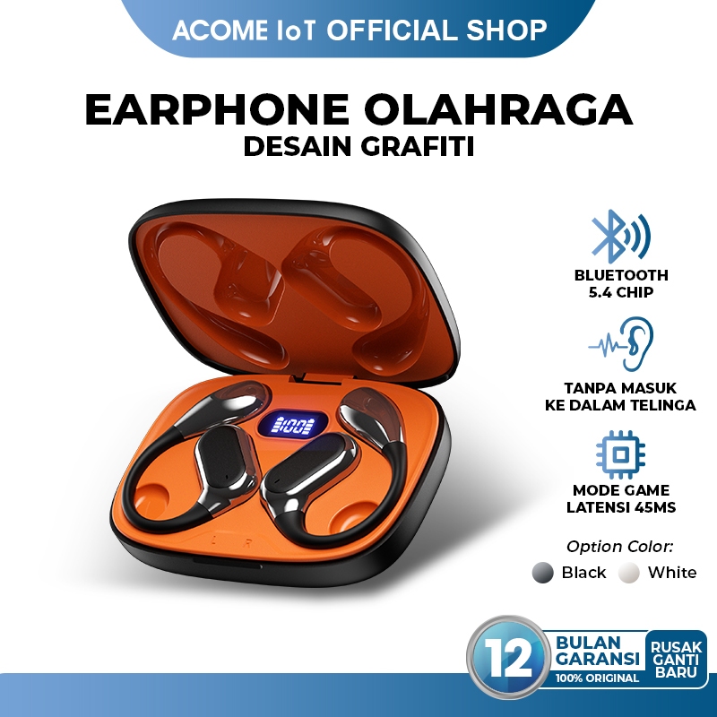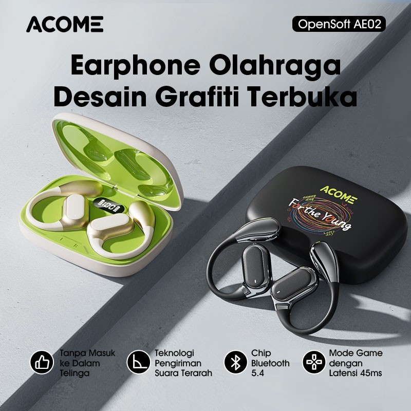 ACOME OpenSoft AE02 OWS Open Ear True Wireless Earbuds Bluetooth 5.4 Earphone IPX4 Waterproof Support Gaming - Garansi Resmi