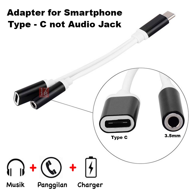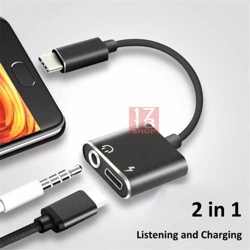 ADAPTER 2 IN 1 TYPE C TO AUDIO JACK 3.5MM CHARGER HEADSET NON MICRO USB KONVERTER