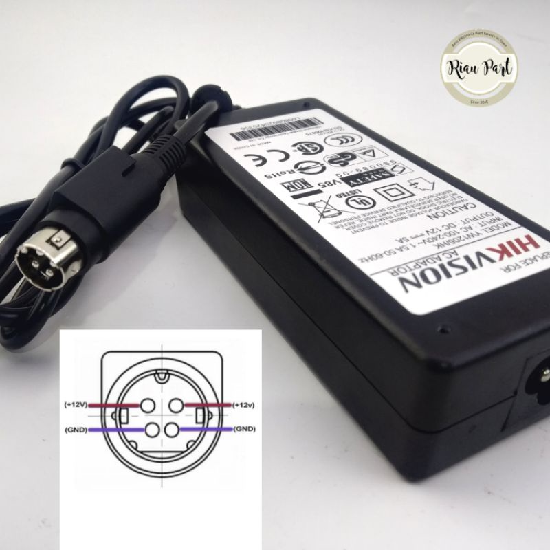 ADAPTOR DVR NVR CCTV HIKVISION 12V 5A POWER DIN 4 PIN MURNI BAGUS
