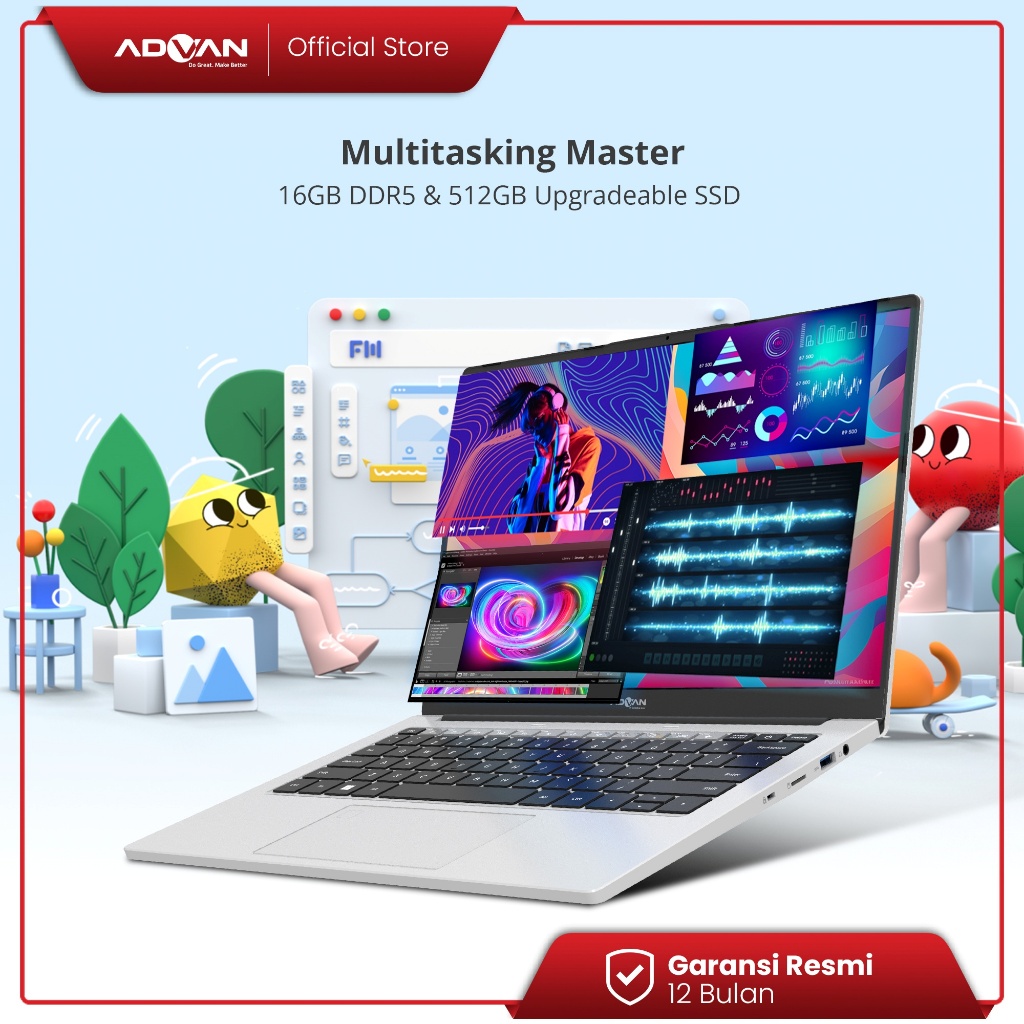 ADVAN Laptop Workplus AMD Ryzen 5 6600H | Ryzen 7 7735HS | 16Gb/512Gb 1TB | 14'' FHD IPS 16:10 | Fingerprint | Windows 11 | Garansi Resmi 1 Tahun