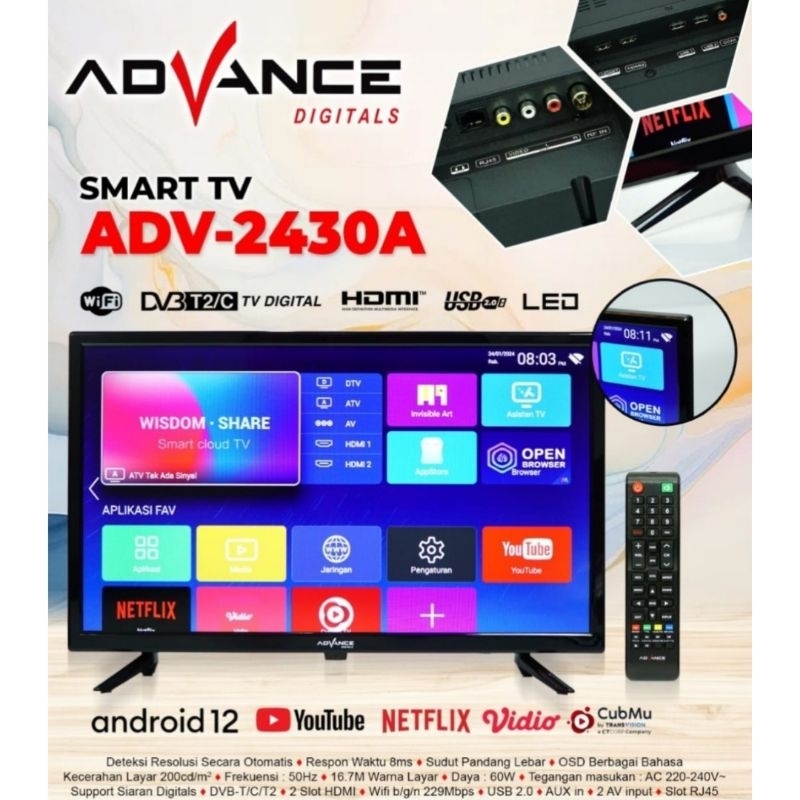 ADVANCE LED TV DIGITAL UKURAN 24INC DENGAN PACKING KAYU ADV-2405T /ADV-2430A