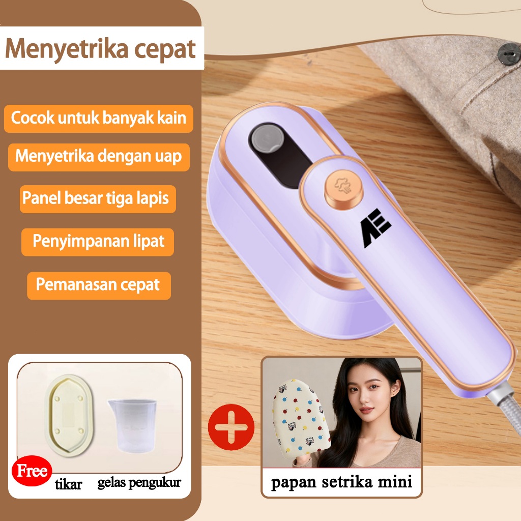 AE 2in1 Setrika Uap Portable Setrika Traveling Mini 1200W 10 Detik Cepat Panas Penggunaan Kering/Basah