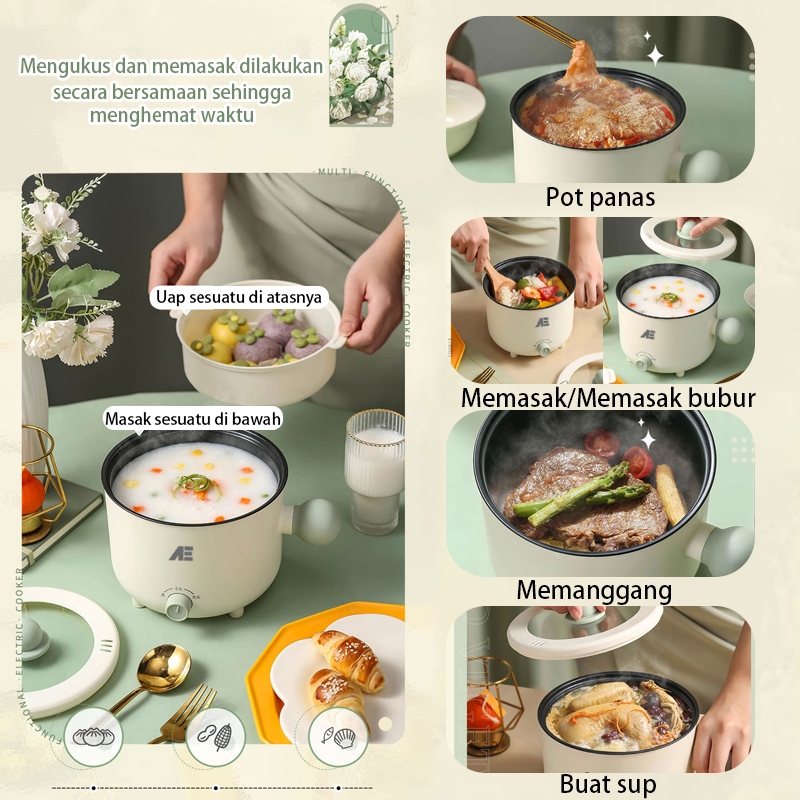 AE 2L Panci Listrik Serbaguna Electric Cooker Anti Lengket Elektrik Multifungsi 3in1 Kukusan Listrik Lapisan Keramik Penyesuaian Kecepatan Ganda Mengukus