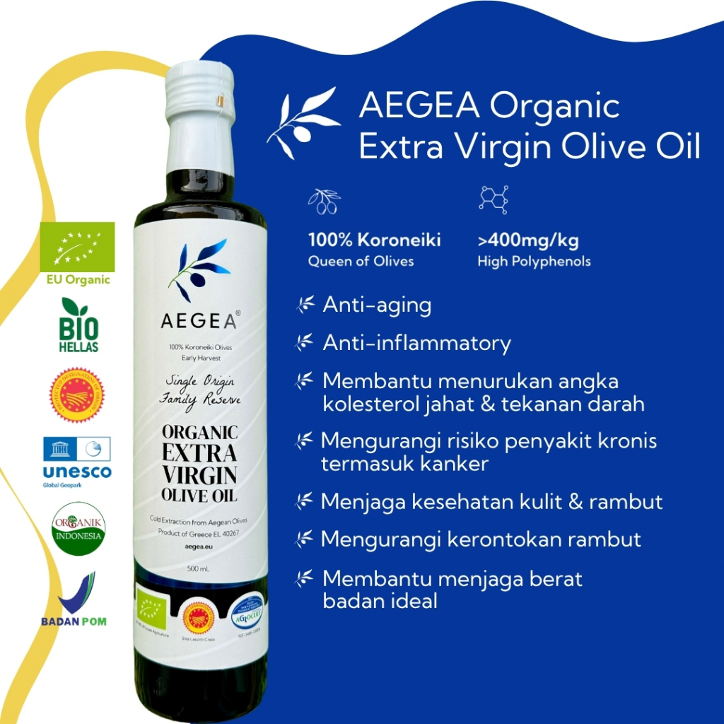 AEGEA Minyak Zaitun Extra Virgin 250ml - Organik EU, Polifenol Tinggi, Asli Yunani