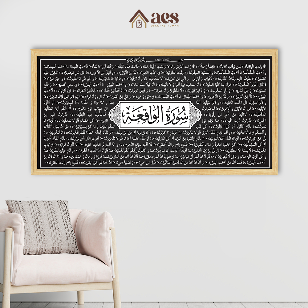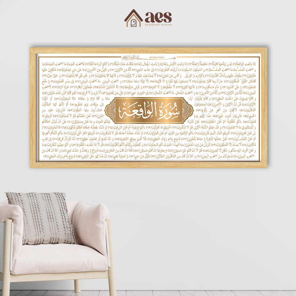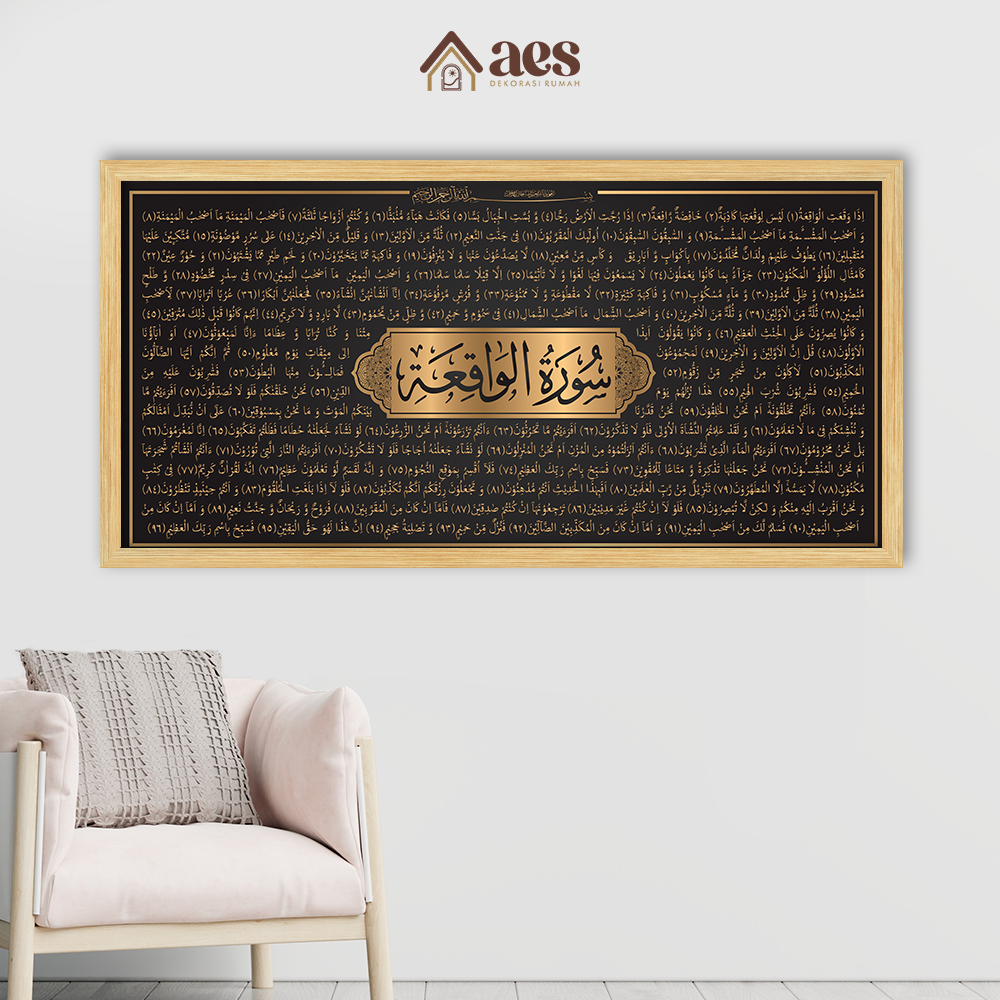 AES Kaligrafi Surat Al Waqiah Aesthetic Frame Jati Belanda 40x80 KS076 - Pajangan Hiasan Dinding Jumbo Besar Dekorasi Ruang Tamu Kamar Minimalis Islami