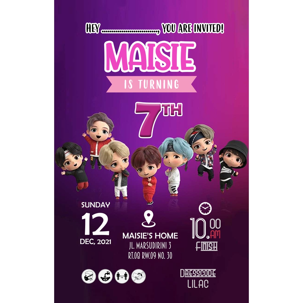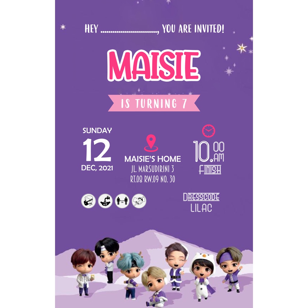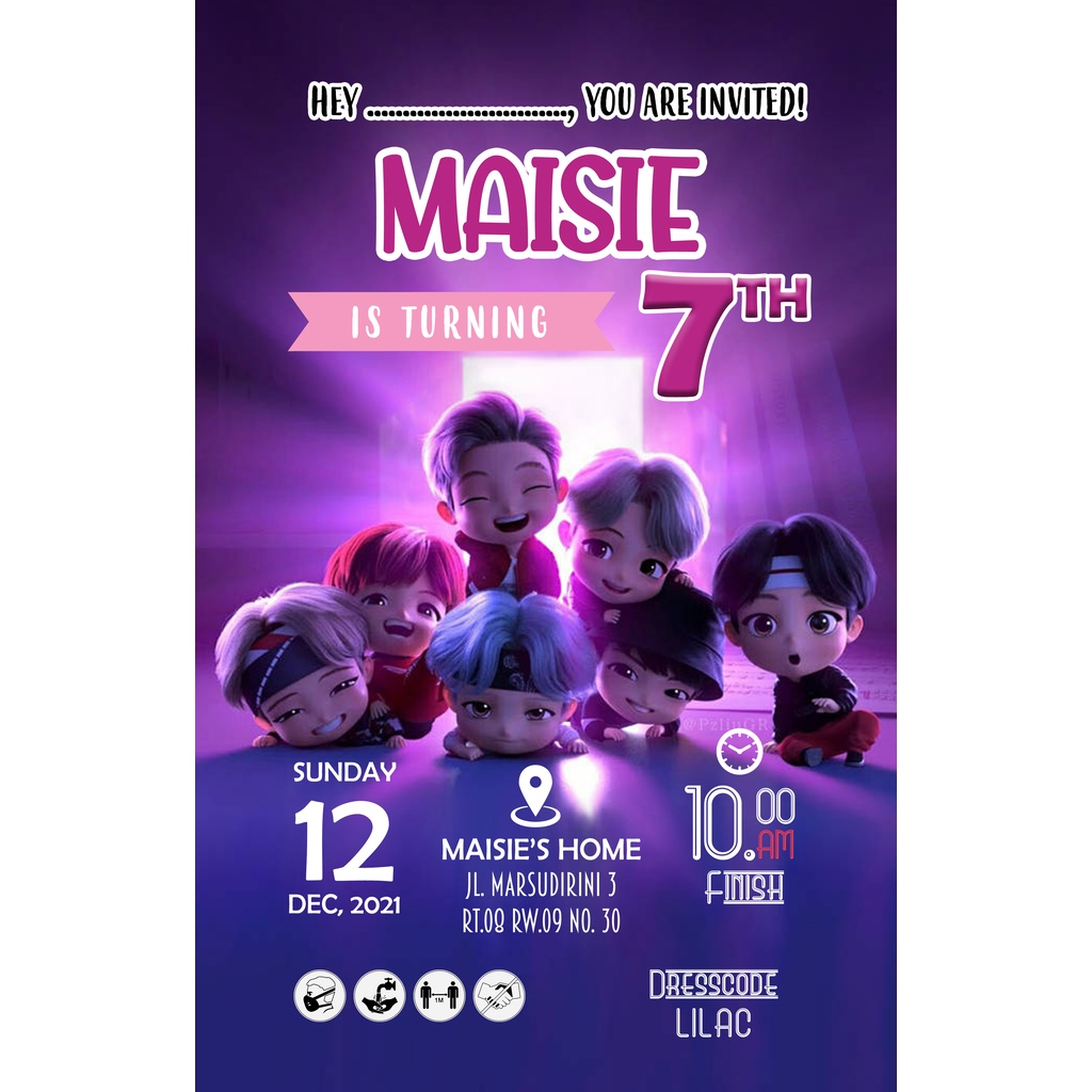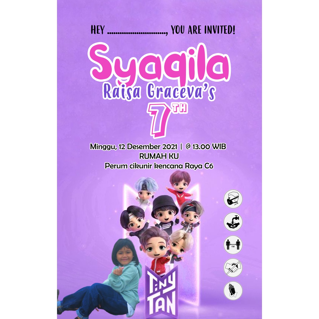 AFY Undangan Kartu Undangan Ulang Tahun Anak Tiny Tan BTS | Undangan BTS | Undangan Tiny Tan