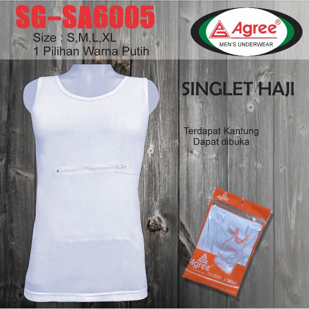 AGREE - Singlet Pria Polos Tanpa Lengan Saku Depan Singlet Haji Kaos Haji SG-6005