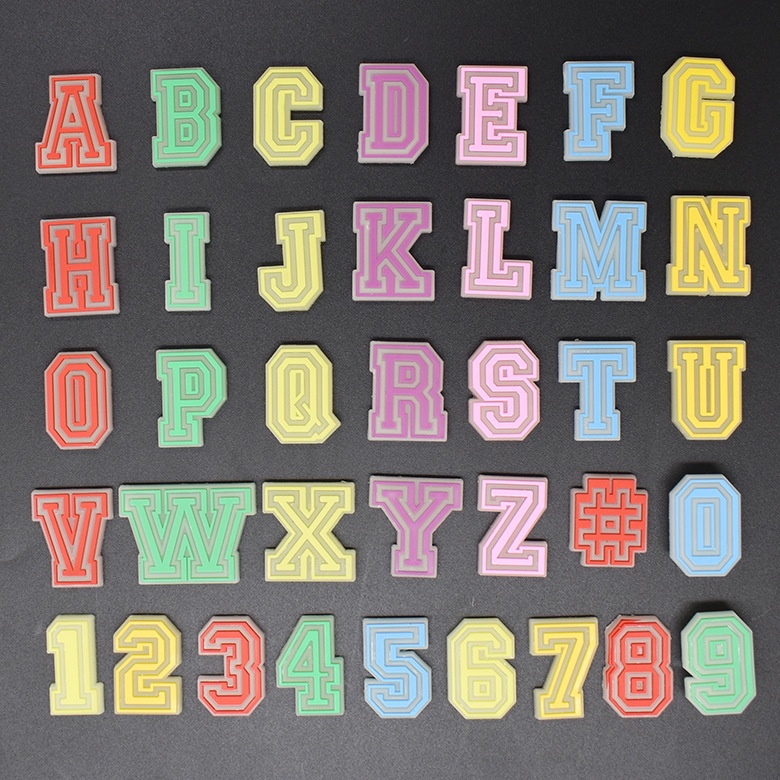 AHG-004 Pin Sandal Bercahaya Bentuk Angka Huruf Warna Warni Glowing in The Dark Pins Charm Putih Noctilucous Sepatu ABJAD XAXACC