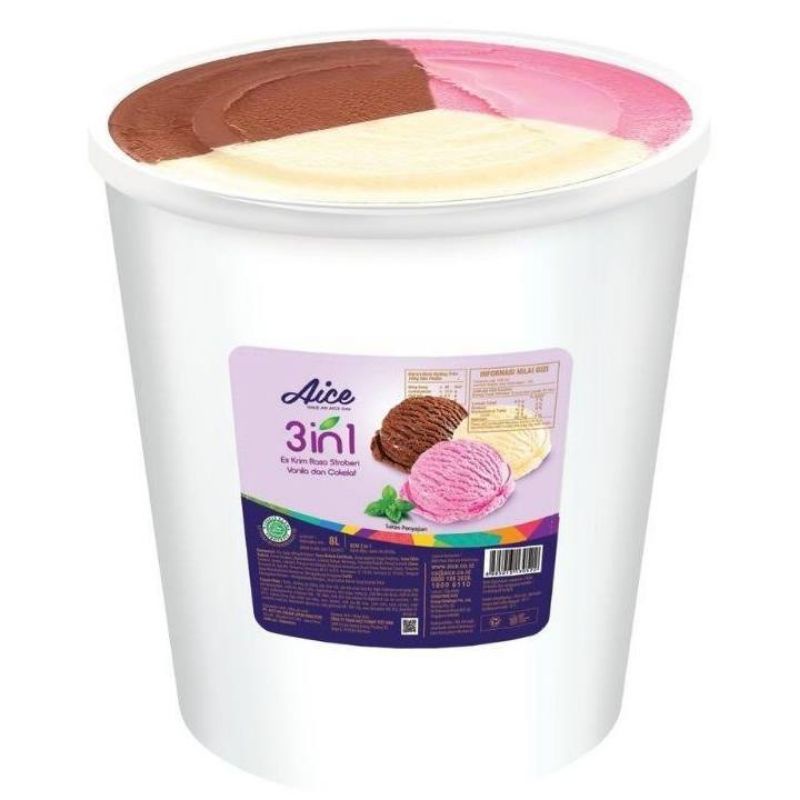 AICE Family 3 IN 1 Bucket 8 Liter - Ice Cream Ember Rasa Coklat Strawberry Vanilla - Eskrim 8L Aice Murah