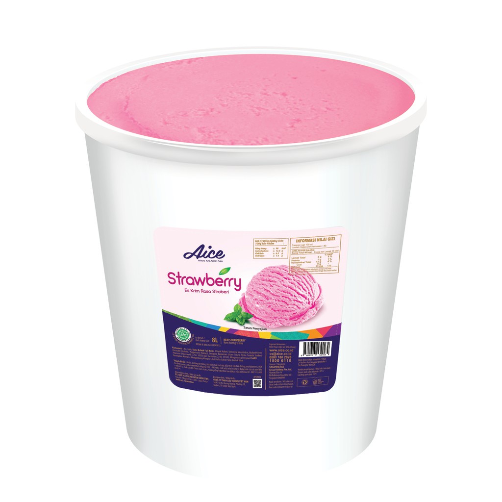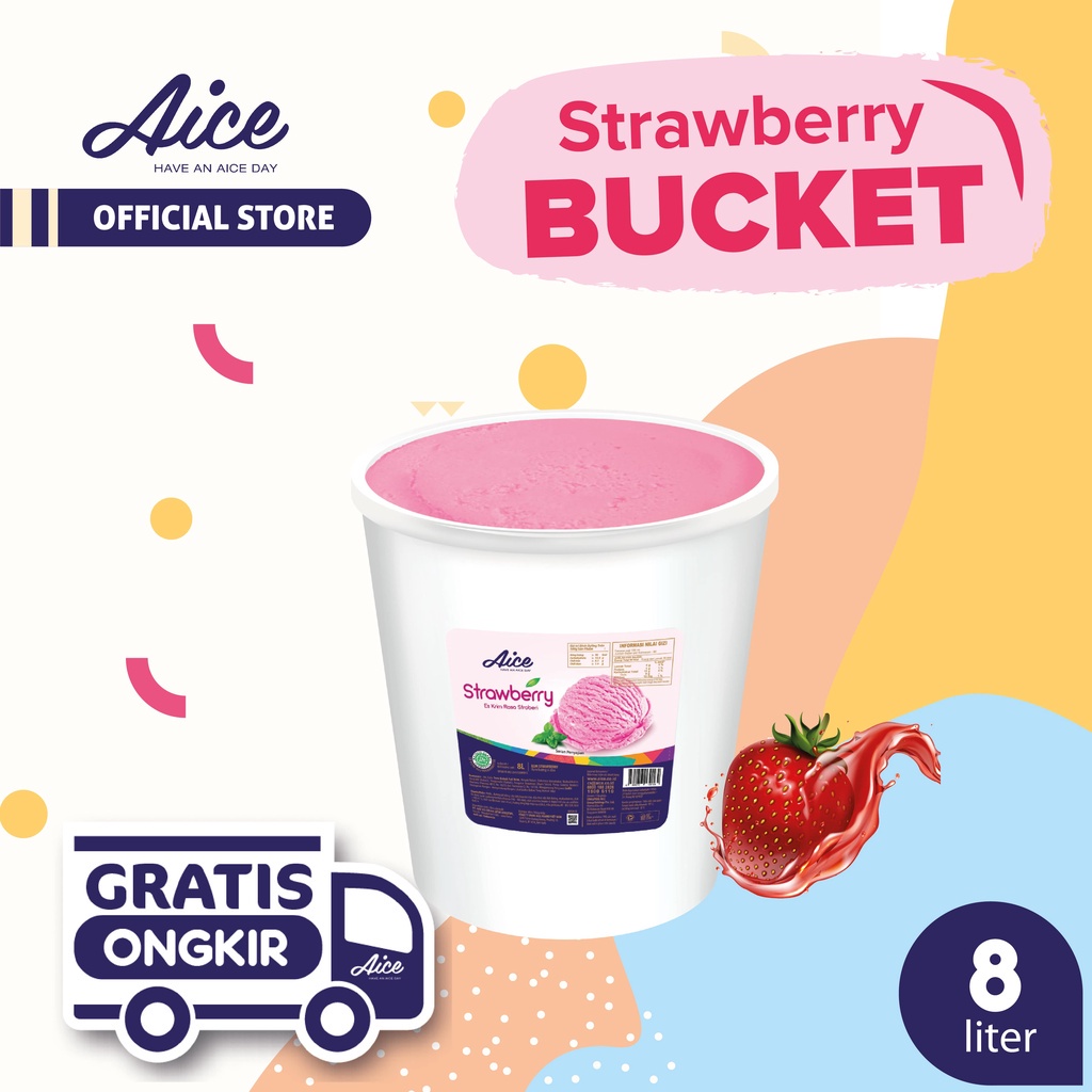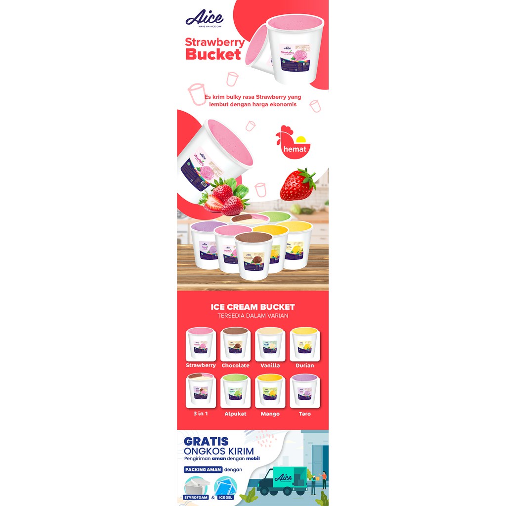 AICE Strawberry Bucket Ice Cream Es Krim Ember 8L Eskrim