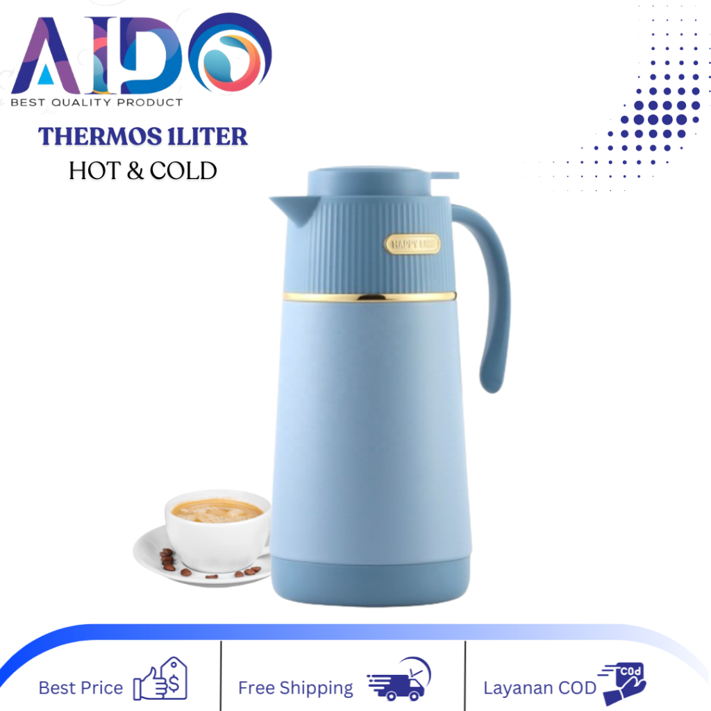 AIDO 1000ML TERMOS AIR PANAS KACA LUAR PLASTIK TAHAN PANAS DINGIN WATER JUG 1 LITER BESAR JUMBO