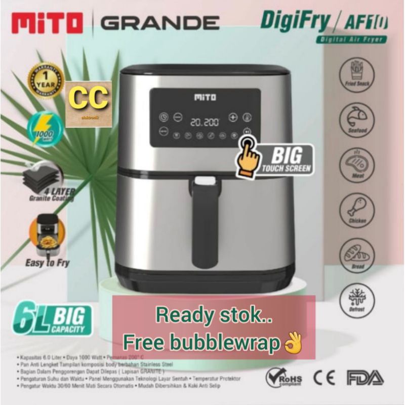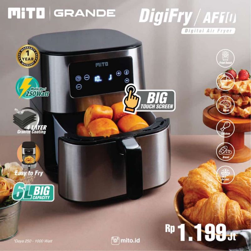 AIR FRYER PENGGORENGAN TANPA MINYAK AF10 AF 10 GRANDE MITO MITOCHIBA TOUCH SCREEN ORIGINAL GARANSI