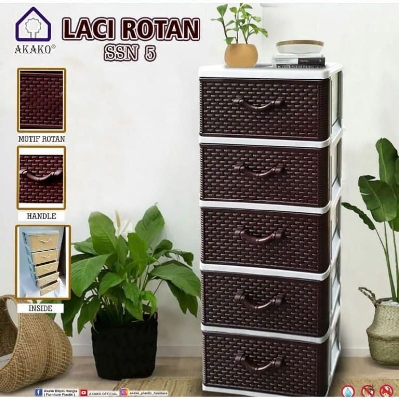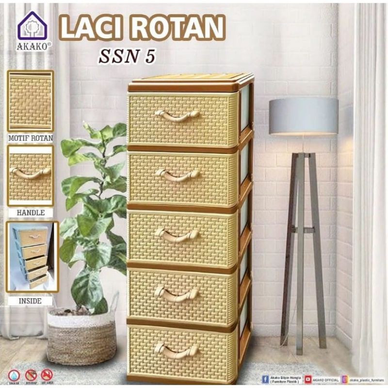 AKAKO - Lemari Laci Plastik motif Rotan susun 3 4 5 NEW PROMO, Laci Pakaian Plastik, Laci Baju Plastik, Lemari Pakaian Plastik