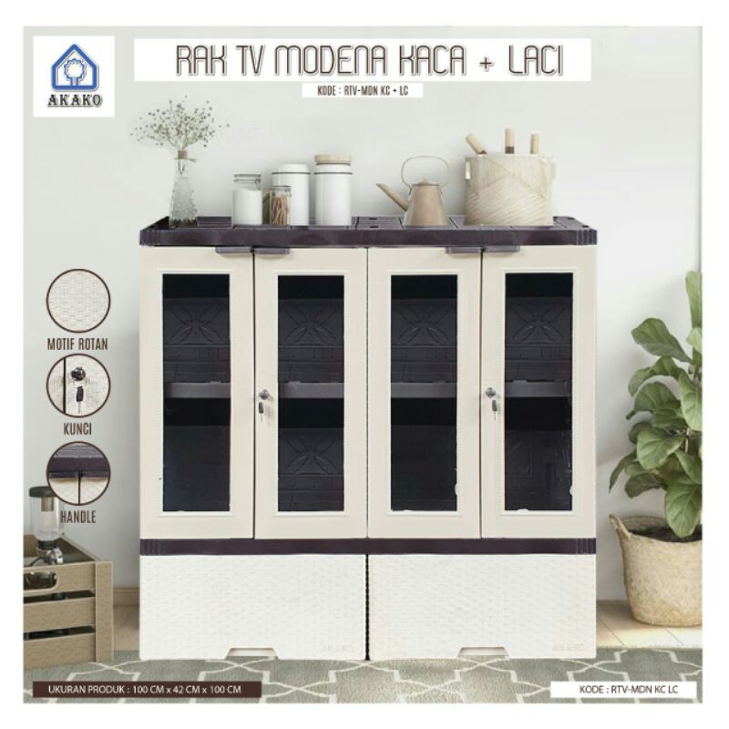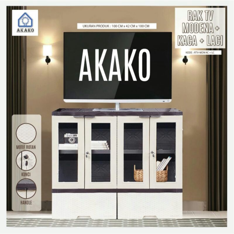 AKAKO - Lemari Rak TV + Laci + Kaca (4 Pintu Kaca + 2 Laci) (RTV MDN)