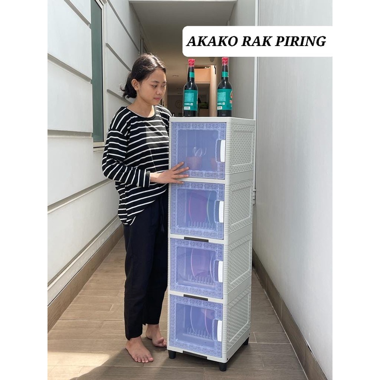 AKAKO - RAK PIRING PLASTIK BENING PINTU SWING AKAKO / TEMPAT PENYIMPANAN PIRING GELAS