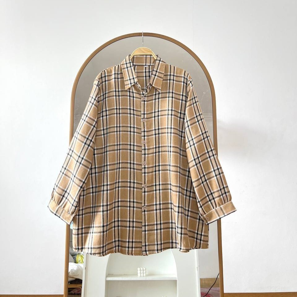 AKAVI - RUSSHELL FLANEL SUPER JUMBO KEMEJA BIGSIZE ATASAN OVERSIZE LD 120 130 140 150 COD (300gr)