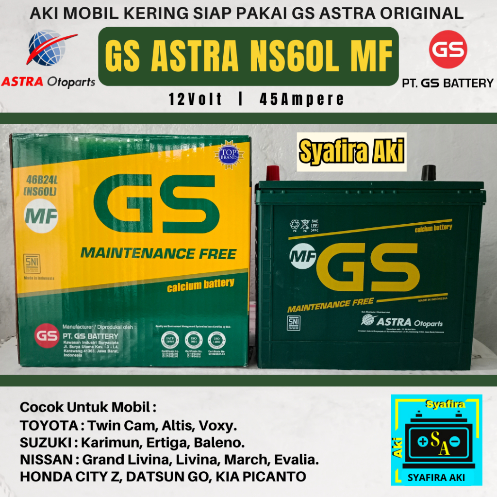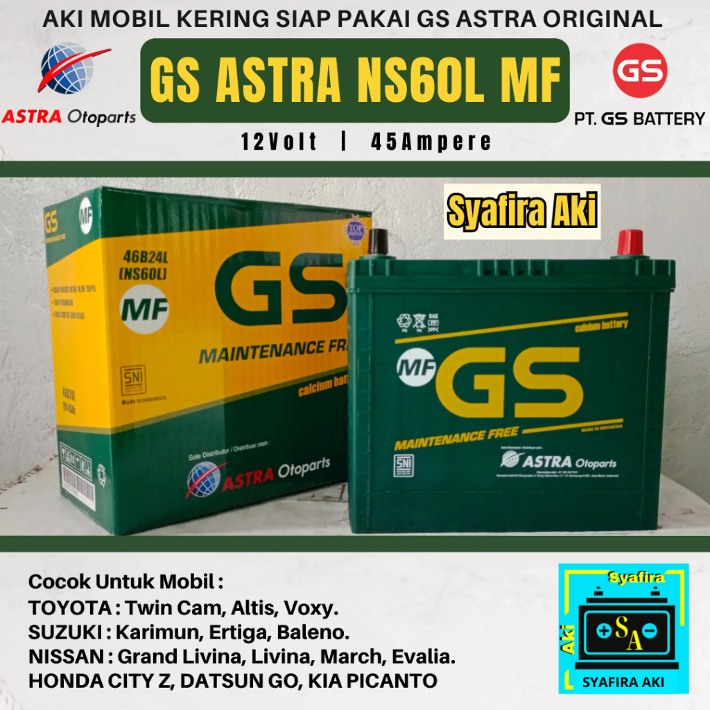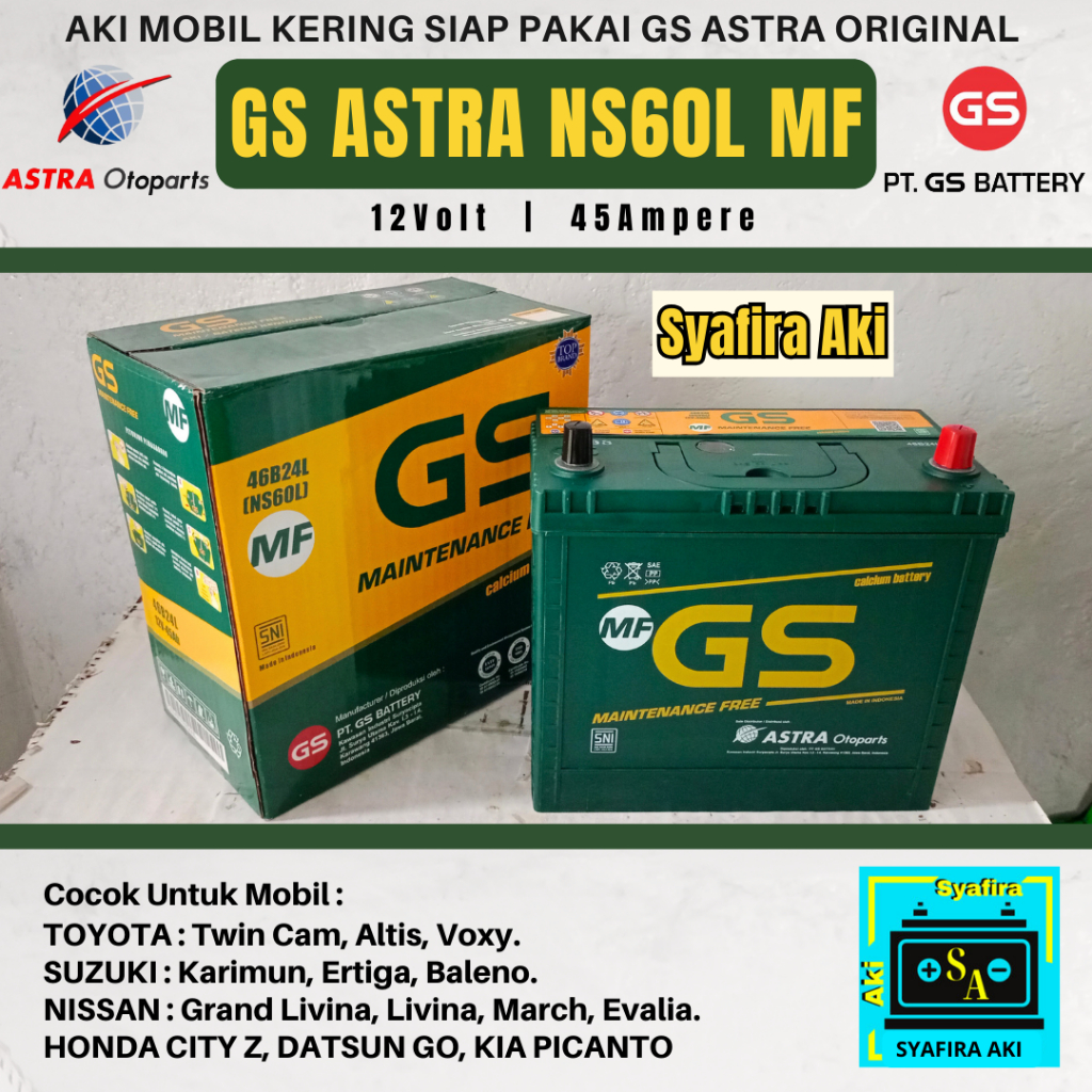 AKI MOBIL SUZUKI ERTIGA, XL-7, IGNIS, BALENO, KARIMUN, AERIO NS60L GS ASTRA MF