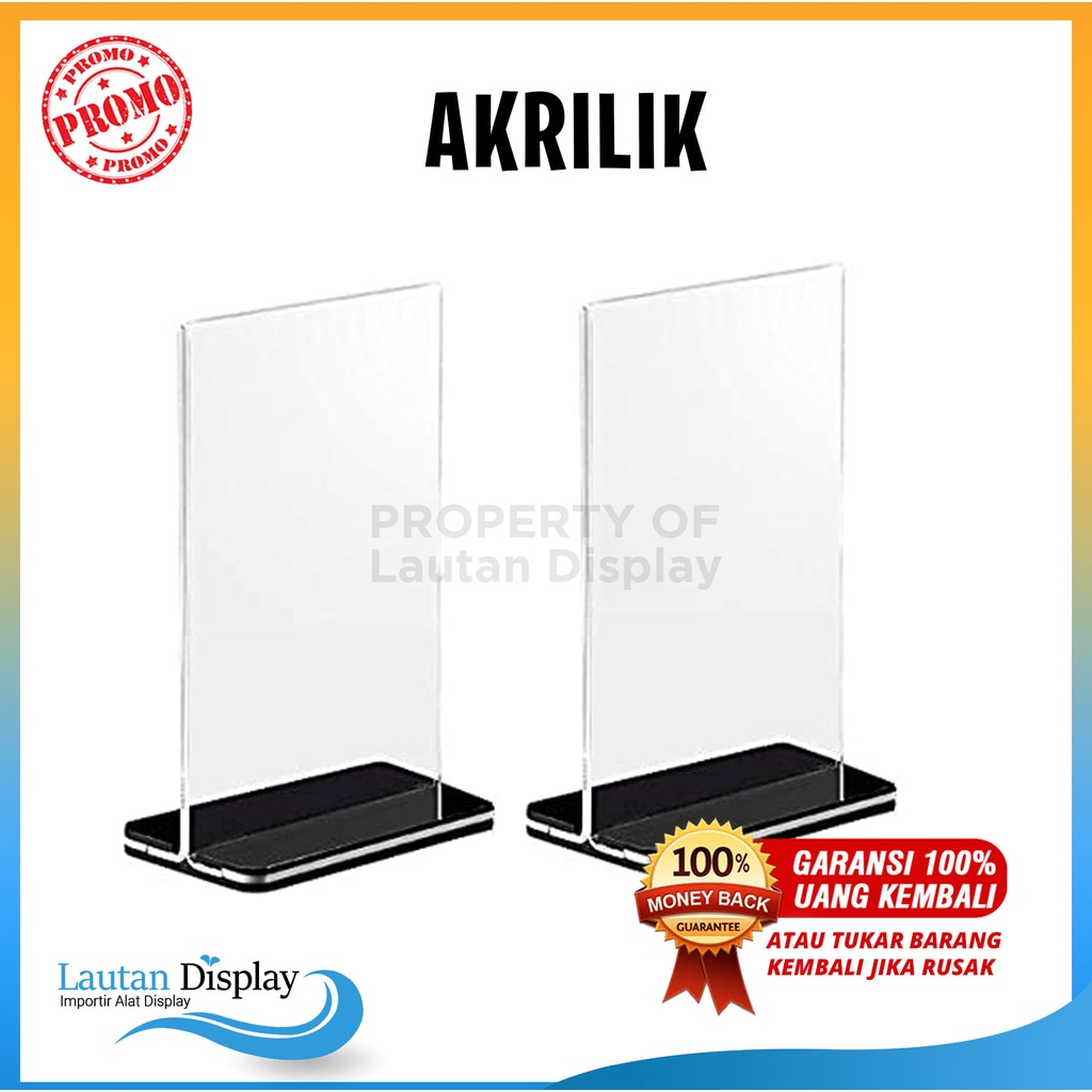 AKRILIK BENING TYPE T POTRAIT STAND HOLDER TEMPAT BROSUR BENING MENU MAKANAN A4 TENT CARD DISPLAY A5
