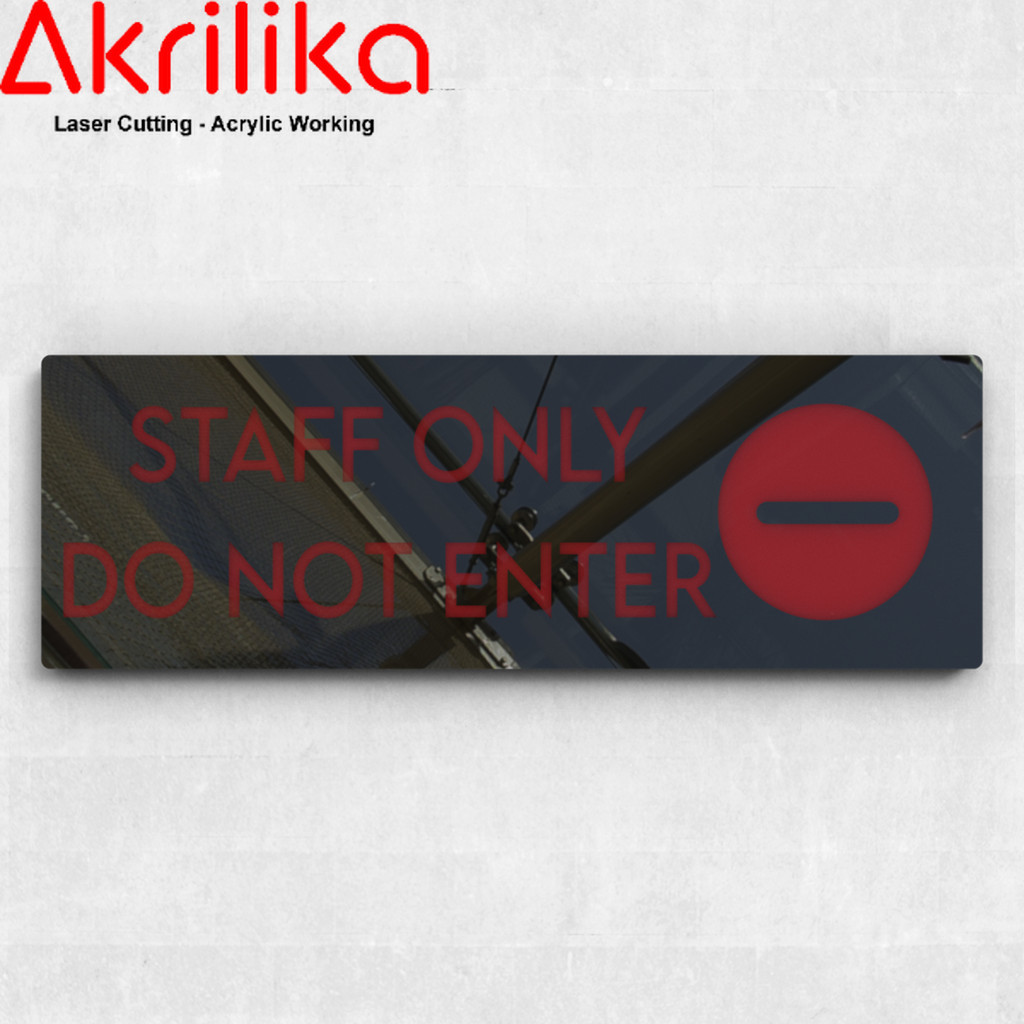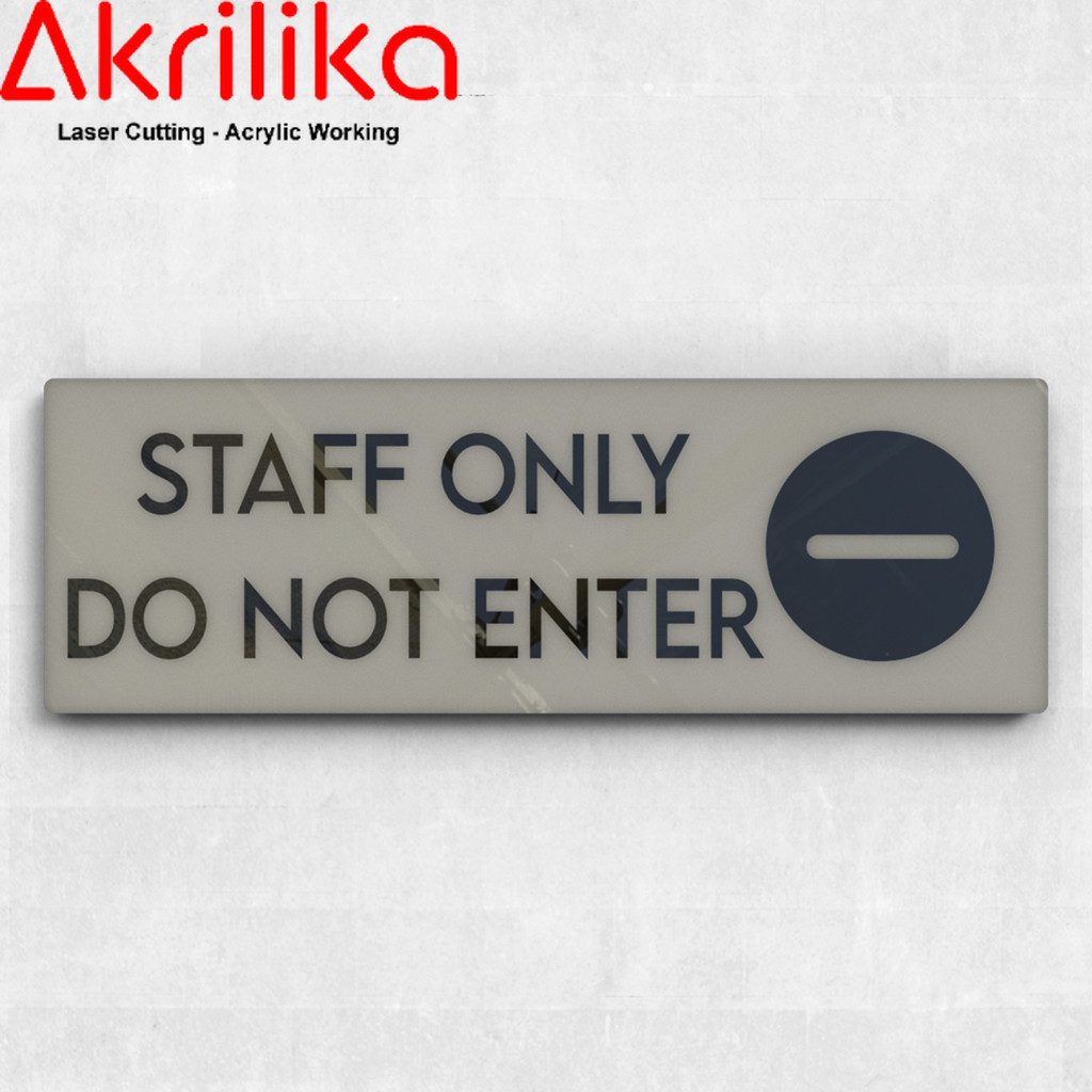 AKRILIK SIGNAGE/SIGNBOARD/WARNING STAFF ONLY DO NOT ENTER 27X9 LANDSCAPE MINIMALIS ESTETIK AKRILIKA