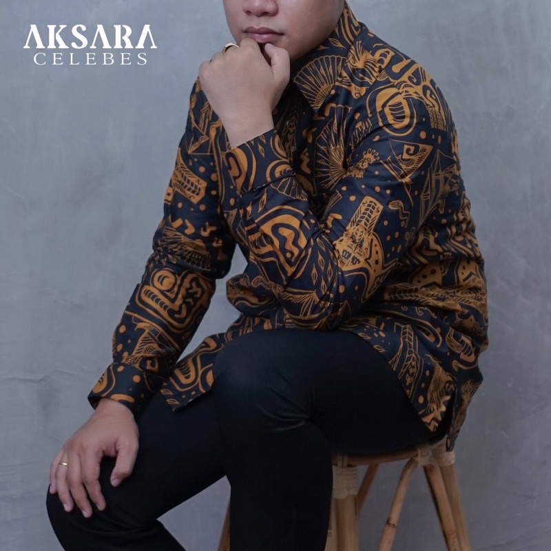 AKSARA CELEBES - BAJU KEMEJA BATIK LONTARA MOTIF SOUTH SULAWESI KHAS SULAWESI SELATAN - BAJU KEMEJA PRIA