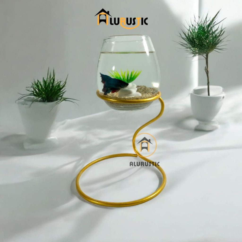 AKUARIUM MINI IKAN ESTETIK GOLD / AQUARIUM IKAN CUPANG GUPPY / AQUASCAPE / HIASAN MEJA TANAMAN / POT TANAMAN AIR HIDROPONIK