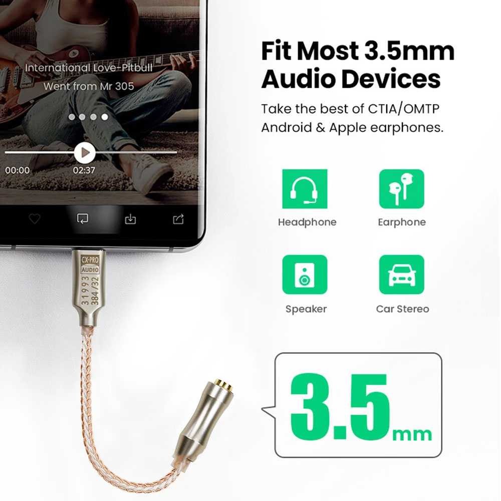 ALAC Kabel USB Type C ke 3.5mm Adaptor HiFi DAC Conexant CX31993 Chip - CX-PRO