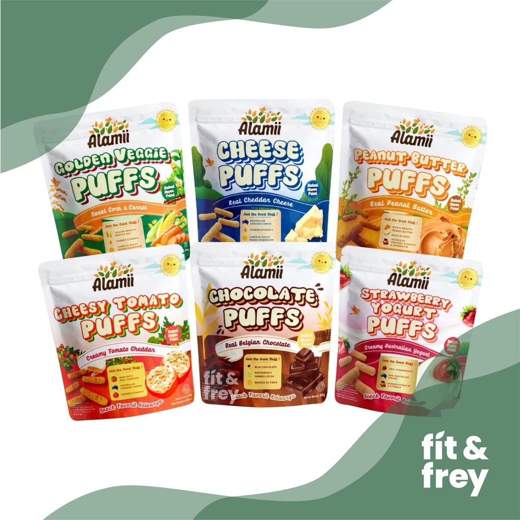 ALAMII Puffs - Snack Sehat Bayi / Anak - Cheese/Golden Veggie/Peanut Butter/Strawberry Yogurt - Cemilan Biskuit Anak NO MSG Halal