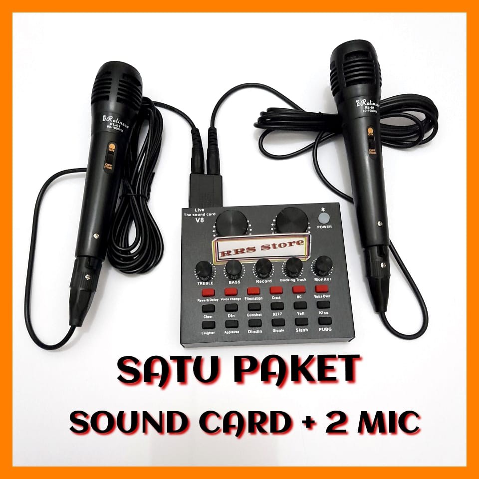 ALAT KAROKE SATU PAKET Mixer mini mic MURAH KUALITAS BAGUS sondcad sonkad Soundcard Broadcast Microphone V8 - V8bluetooth ALAT KAROKE V8 Sound Card Mixer Audio for HP PC Mac Live Broadcast Karaoke Recording