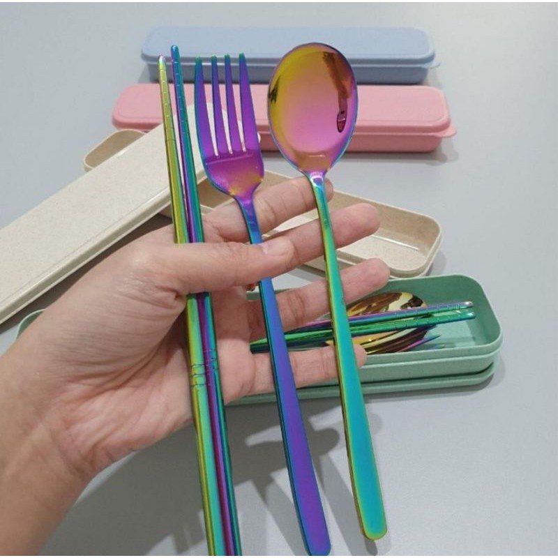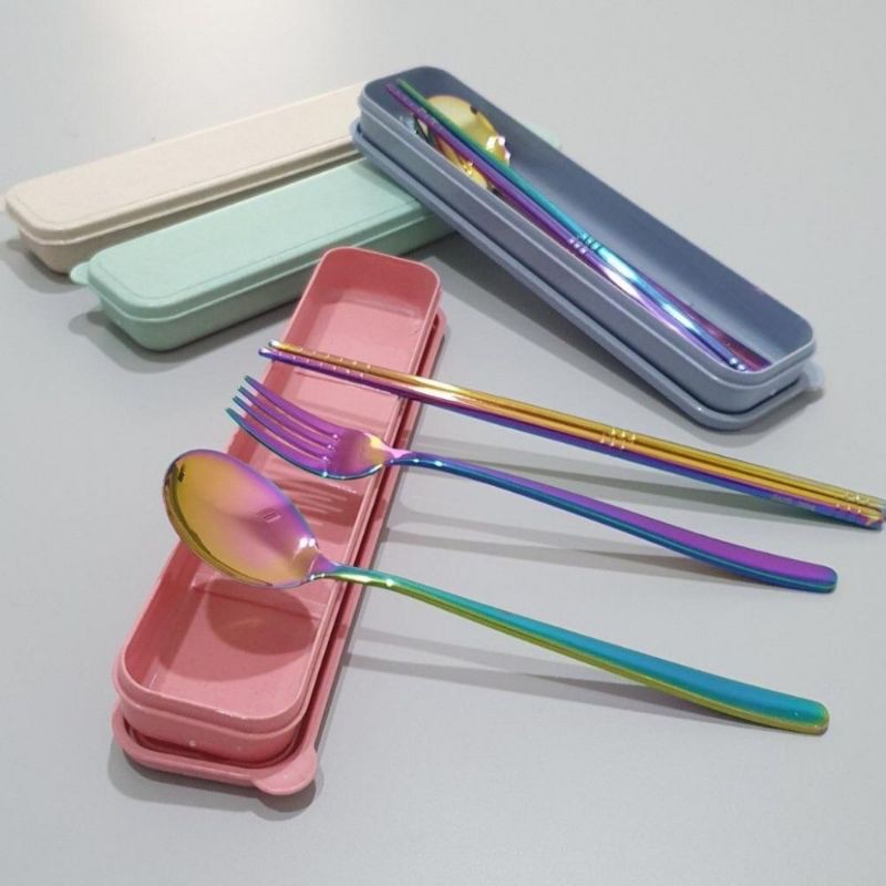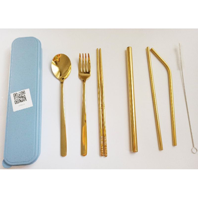 ALAT MAKAN STAINLESS STEEL LENGKAP DENGAN SEDOTAN STAINLESS