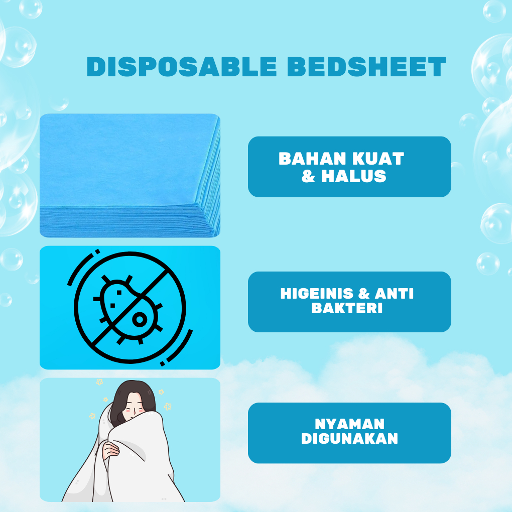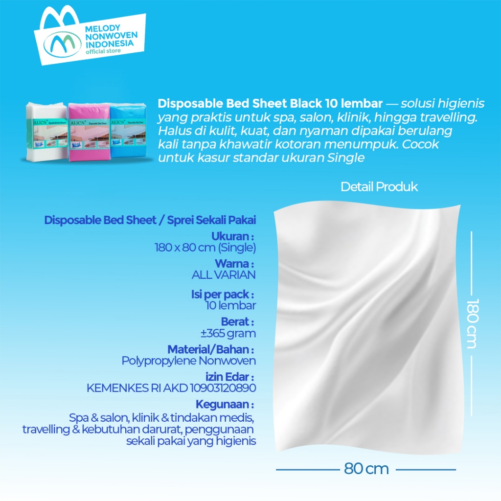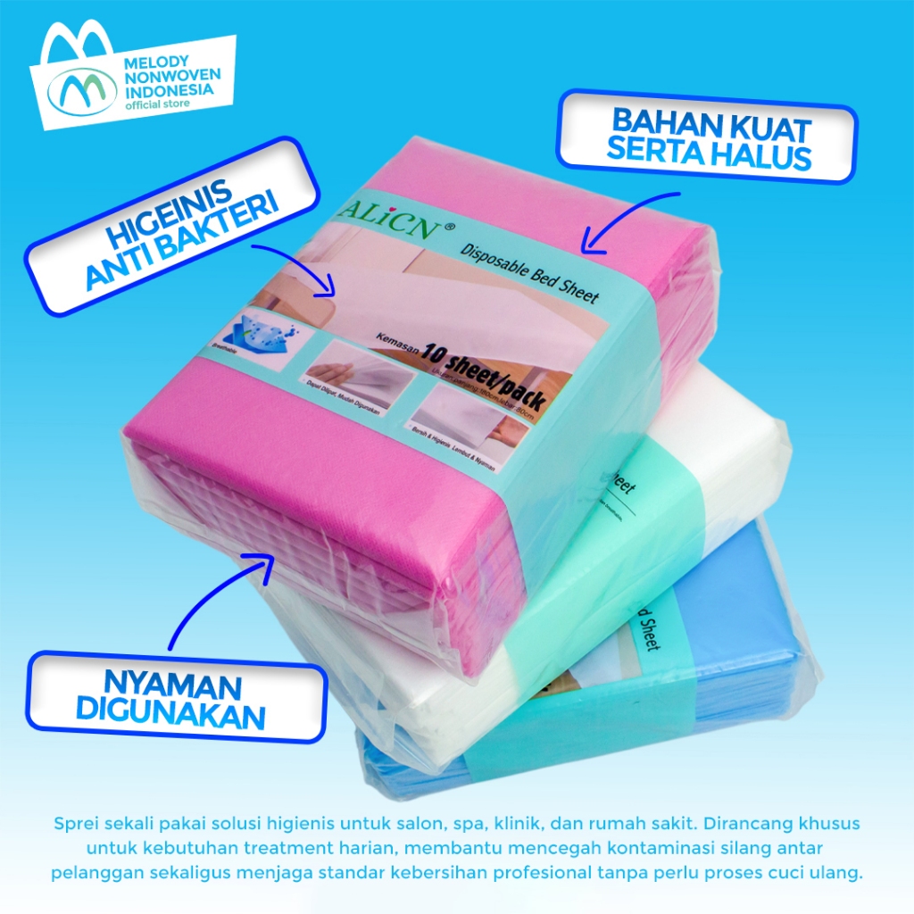 ALICN Bed Sheet Sekali Pakai Putih 10 Lembar 80x180 | Disposable Sprei SMS Kualitas Terbaik Untuk SPA Salon dan Klinik